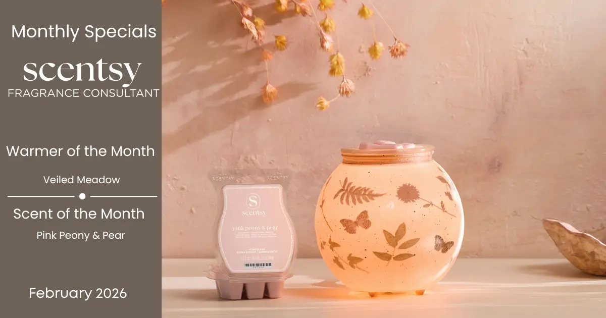 Scentsy February 2026 Warmer of the Month – Veiled Meadow + Pink Peony & Pear